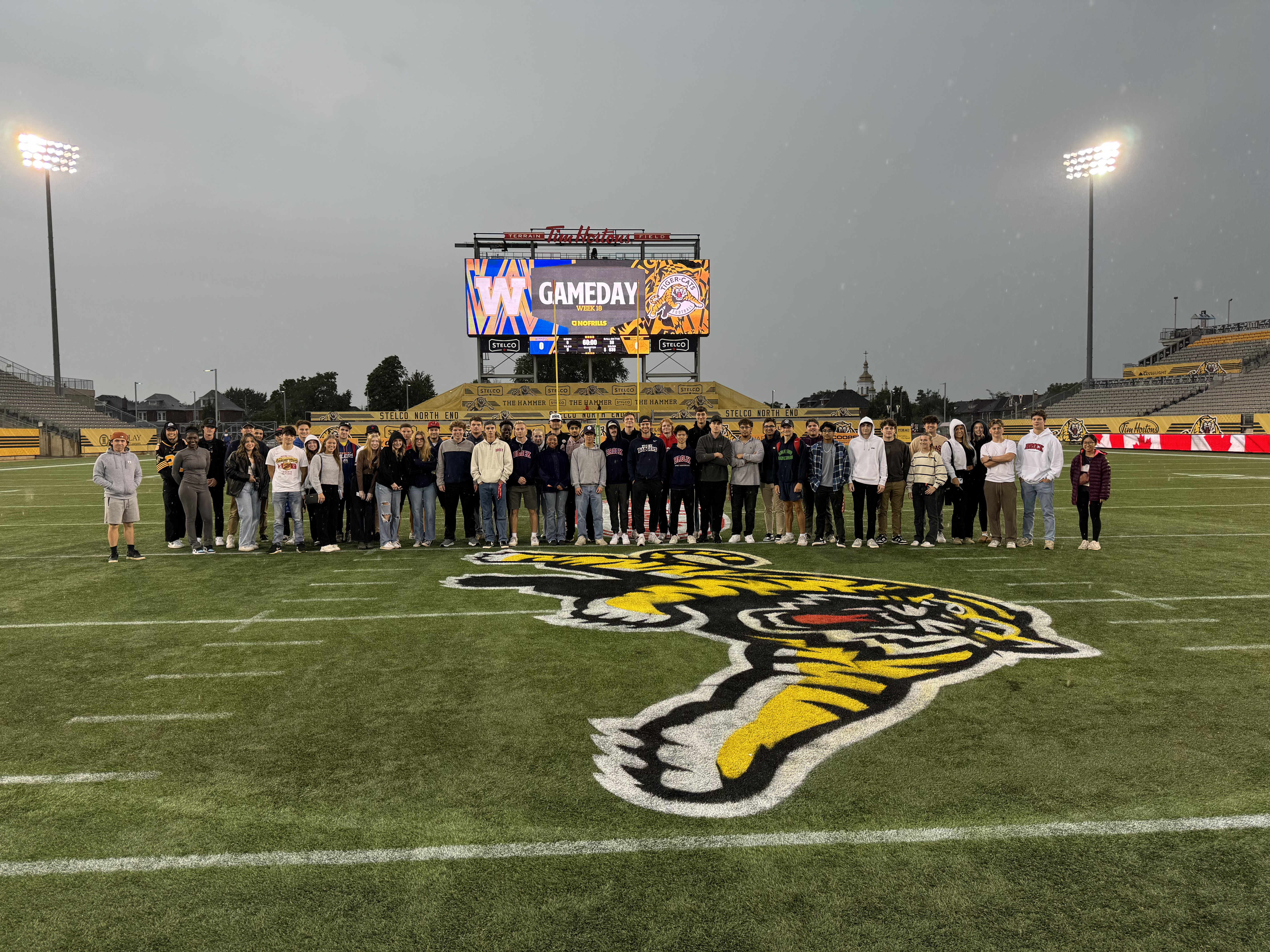 For the Tiger-Cats home game on October 4th, we organized a sold-out trip to Tim Hortons Field for 55 students to tour the stadium and Canadian Football Hall of Fame, engage in a panel discussion with Tiger-Cats Staff, watch warm-ups on the sidelines, and hold the Canadian flag pre-game while enjoying a great night of Friday Night Football.